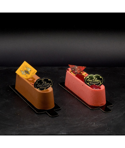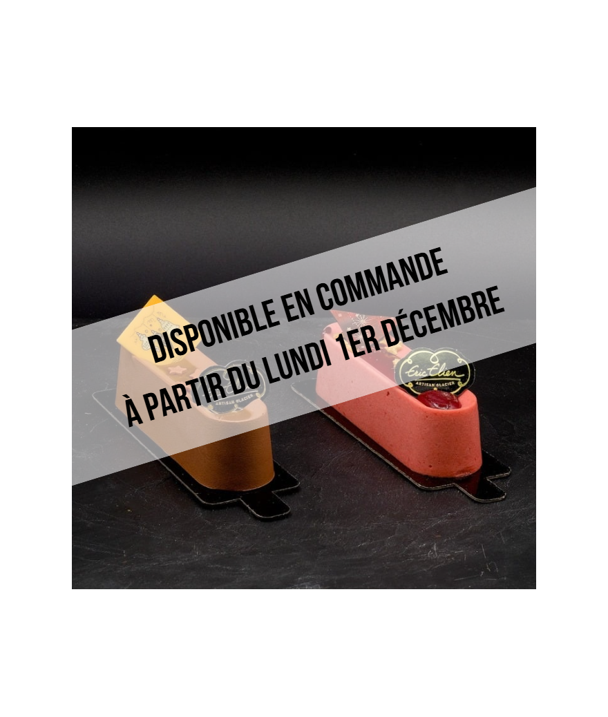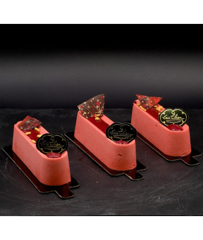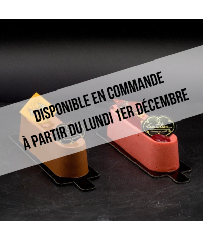 Bûchette fraise : Fraise 63%, saccharose, eau, sirop de glucose déshydraté, jus de citron, sucre inverti, protéine de pomme de terre, gélifiants (gomme de caroube et gomme de guar), farine de graines de guar, Cassis 40%, cassis confit 6%, protéine de pomme de terre