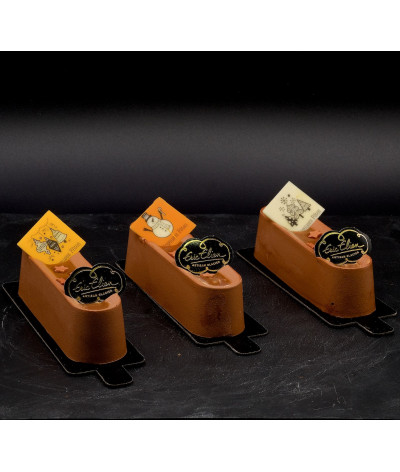 Bûchette chocolat : Lait cru fermier, saccharose, chocolat 6% (pâte de cacao, sucre, poudre de cacao maigre, émulsifiant: lécithine de soja; E476, arôme naturel de vanille), beurre doux, crème fraîche, poudre de cacao, lactose et protéine de lait, sucre inverti, gélifiants (gomme de caroube, E401, gomme de guar, carraghenanes), émulsifiant: E471, beurre demi-sel 14%, caromel, jaunes d'œufs, sirop de glucose déshydraté.