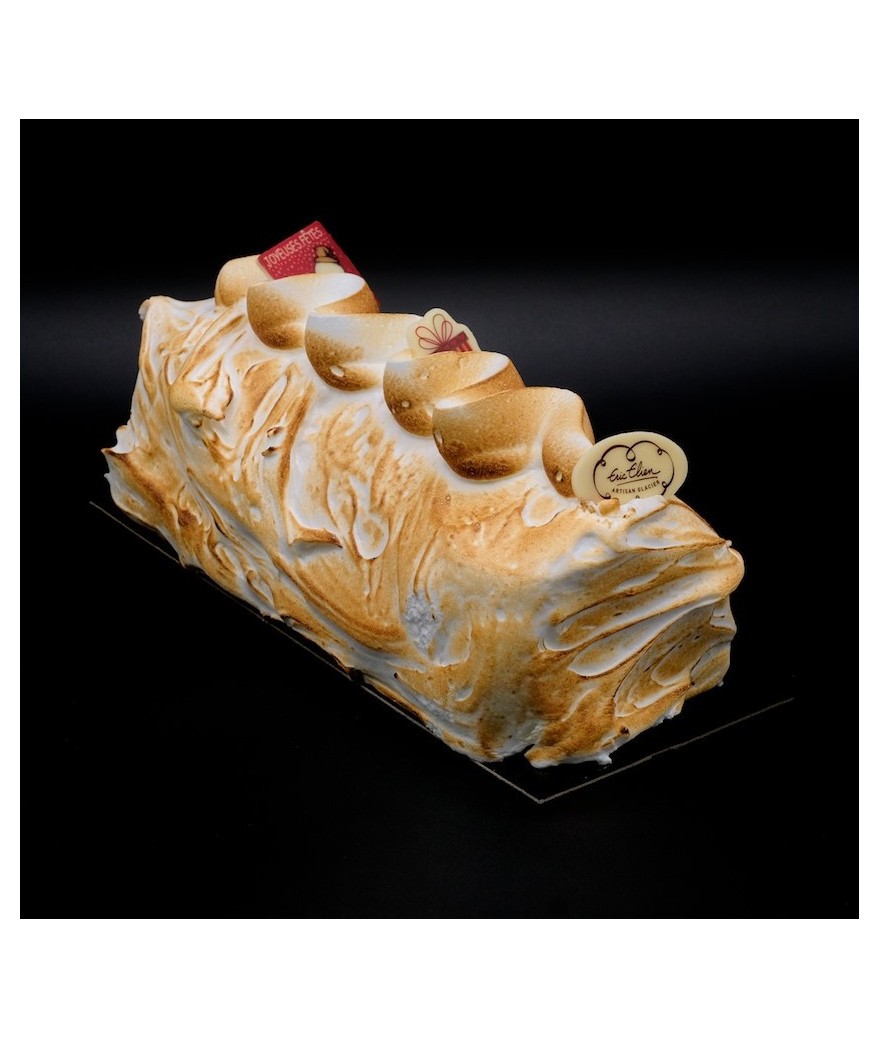Composition : Lait cru fermier, crème fraîche, saccharose, jaunes d'œufs, lactose protéine de lait, sirop de glucose déshydraté, beurre doux, extrait naturel de vanille 0,16%, sucre inverti, gélifiants (E410, E401, E412, E407), gousse de vanille Bourbon Madagascar infusée 0,1%, grains de vanille épuisée, meringue (blanc d'œuf, sucre), biscuit génoise œuf, sucre, farine)